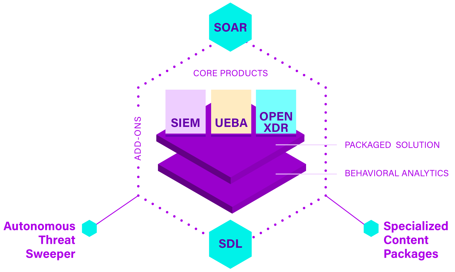 Just take our Security Operations and Analytics Platform as an example. We provide a core platform for SIEM and XDR with data collection, aggregation, and analysis. UEBA and SOAR are built-in because analytics, orchestration, and automation are required for whatever you do. The boundary between detection and response, which has become blurred as part of modern security operations processes, does not need to be reflected in the technology. You can also customize the platform to your needs through an assortment of purpose-driven add-ons.