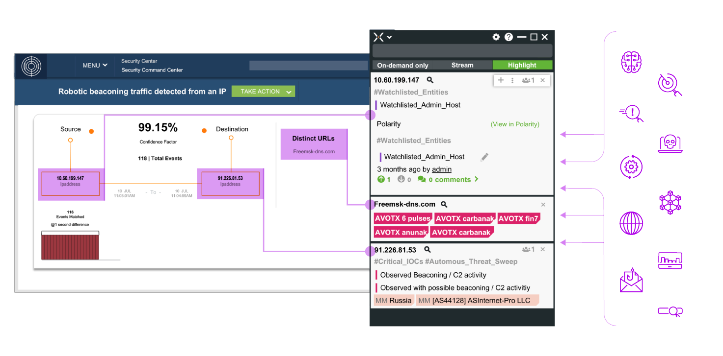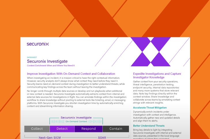 Find the key details needed to understand incidents and effectively mitigate the impact by consolidating related information into a single view. This single view aligns to the data presented within the Securonix user interface for added details that shed light on threats.